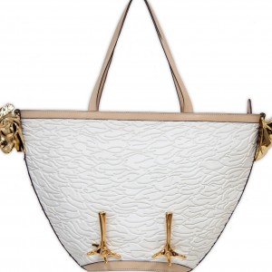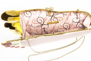 The bags themselves are made from only the most high quality of materials such as durable Spanish leathers and certified exotic skins. They contain infinite textures of breathtaking silk, gold thread, sheer organza, fine embroidery, sculpted bronze, semi-precious stones, fiberglass or Swarovski crystals with gorgeous finishes of gold and silver plating, jewelry enamel, bronze patina and reenacting original baroque ornamentation as the distinctive signature of the brand.
