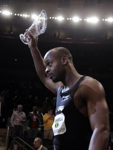 The Jamaicans swept the 50 dashes in a customary show of strength. Former 100 world-record holder Asafa Powell edged countryman Nesta Carter in the men’s race, winning in 5.64 seconds.
