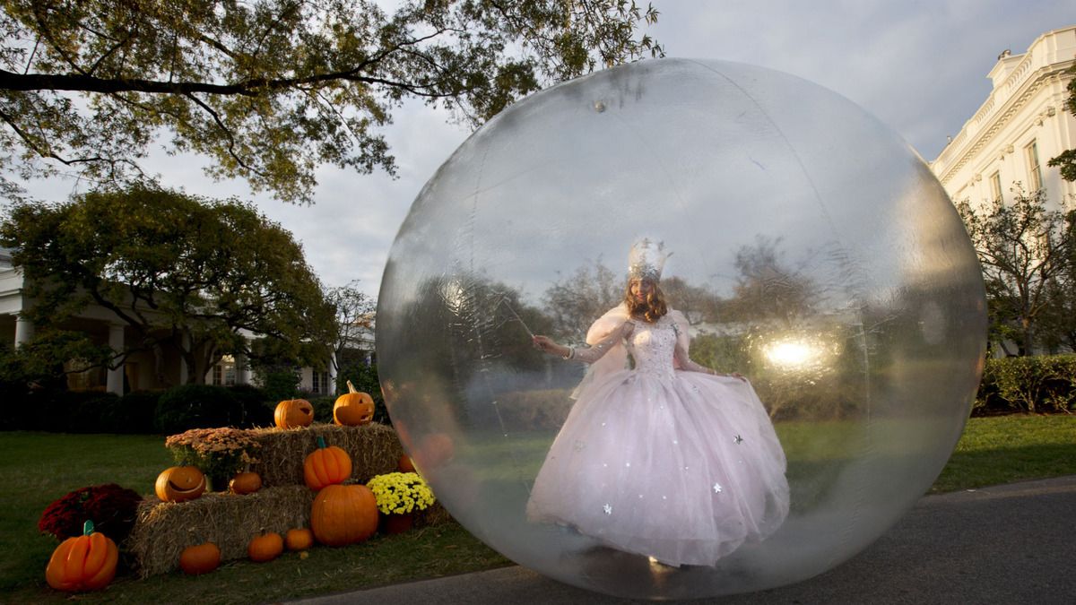 This year, schoolchildren and children of military families were invited to fill their bags to the brim with plenty of goodies as they trick-or-treated at the South Portico of the White House. The decorations were in abundance. Your gaze was surely able to focus on the over 200 carved pumpkins. We even had to rub our eyes to make sure what we were seeing was not a dream. There on the White House lawn was an enormous clear bubble and none other than Glinda, the good witch, was inside with her wand moving.
