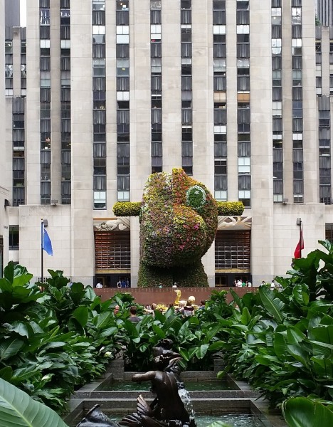 End your day on a high note around the Rockefeller Center area as the overpowering giant flower sculpture from Jeff Koons towers above the crowd, reminding us that fashion comes in all sizes and shapes.
